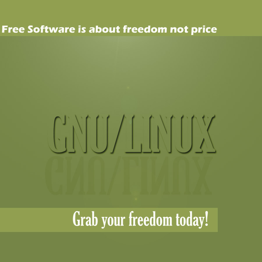 GNU/Linux — Grab Your Freedom Today! Copyright © 2008 Shree Kant Bohra 900x900: JPEG 74kB |